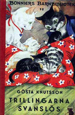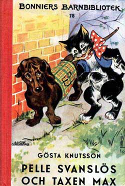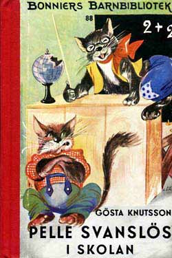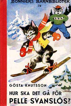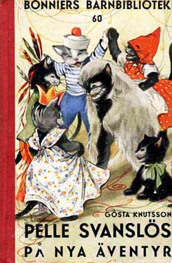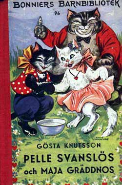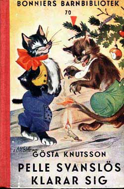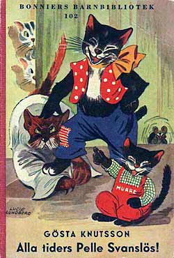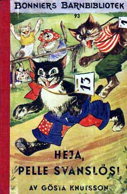 Pelle SvanslösGösta Knutsson är en av våra mest lästa barnboksförfattare. Pelle Svanslös-böckerna har sålts i över två miljoner exemplar, bara i Sverige. Upprinnelsen till Pelle Svanslös-böckerna härör sig från Småland, där Gösta vistades under somrarna.Där fanns en katt som fått svansen avbiten av en råtta. Gösta köpte katten för en krona, han lämnade kvar den i Småland när han återvände till Stockholm. Funderingarna var många vad som hänt katten, Gösta varnade alla senare att aldrig lämna en sommarkatt så som han hade gjort. 1939 kom den första boken ut, Pelle Svanslös på äventyr. Pelle, Måns och Bill och Bull var huvudfigurerna. Det kom ut elva böcker om Pelle Svanslös under åren 1939-1951 i Bonniers barnbibliotek, små böcker i fickformat med röda ryggar och illustrerade av Lucie Lundberg. Gösta Knutsson avled 1973. / Jan Johansson Här finns de första Pelle Svanslös böckerna i originalutgåvor. Titel och årtal finns under varje bok, klicka på resp. bok för större format